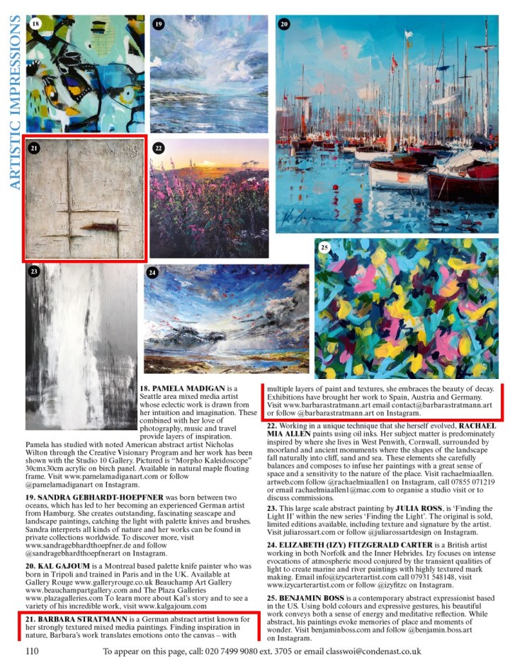 Das seit 2017 erscheinende digitale und gedruckte Kunstmagazin, veröffentlicht Künstler nur auf Einladung und fokussiert darauf, die Geschichte der Kunst von heute zu erzählen, indem es verschiedene Perspektiven und Stile beleuchtet. Jede neue Ausgabe veröffentlicht Werke von bis zu 85 Künstlern verschiedener Fachrichtungen. Das digitale Magazin finden Sie auf der Website, und das gedruckte Magazin kann auch direkt hier bestellt werden.