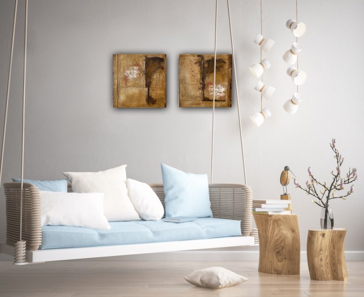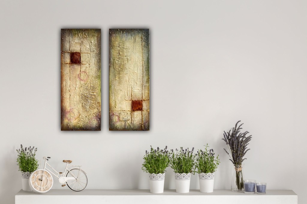 Have a look here at how the paintings could look in an actual home- or office interior.